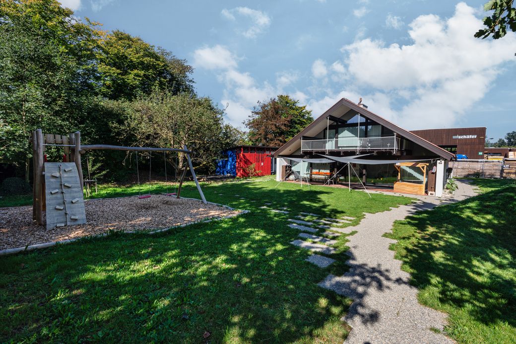Unsere Kita befindet sich am Rande unseres Produktionsareals der Schäfer Holzbautechnik an der Bahnhofstrasse 48 in Dottikon.