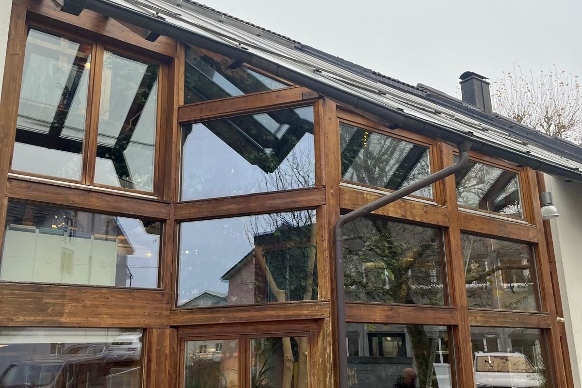 Die alte Holzkonstruktion des bestehenden Hauses war in die Jahre gekommen – jetzt strahlt sie wieder in einem eleganten Grau und empfängt einem schon beim Betreten mit einem hellen, lichtdurchfluteten Ambiente.