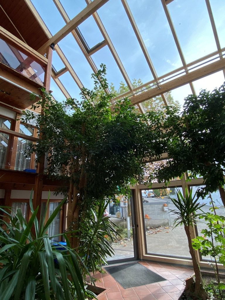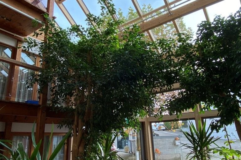 Dank der schönen Pflanzen schwingt sogar ein Hauch tropisches Flair mit. Möchten auch Sie Ihr Zuhause sanieren? Unsere verschiedenen Dienstleistungen, egal ob energetische Sanierung, Anbau, Umbau oder sogar Neubau, finden Sie auf unserer Webseite.