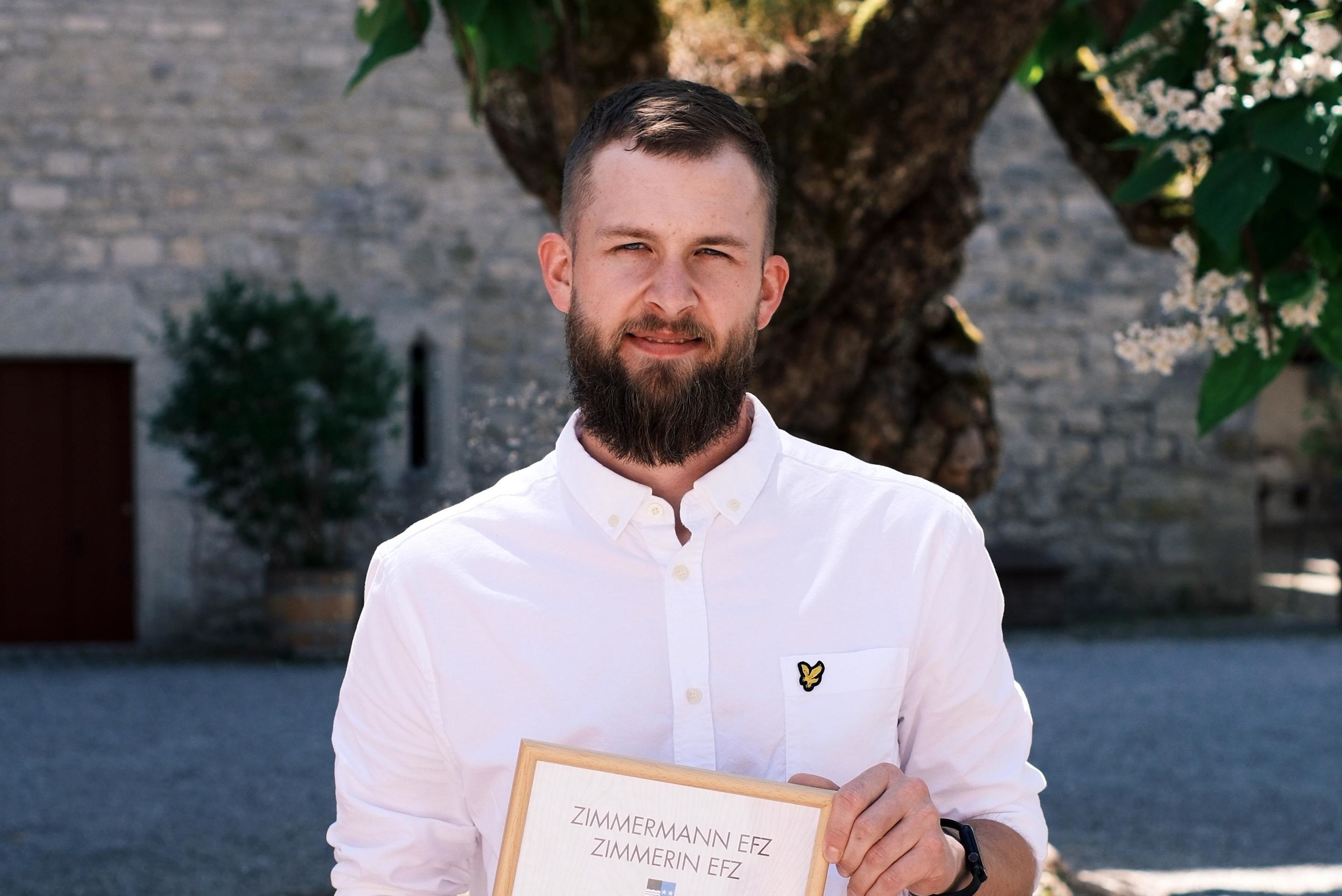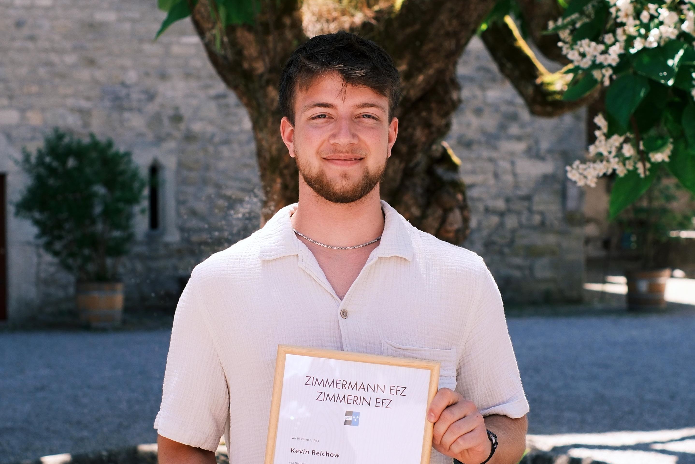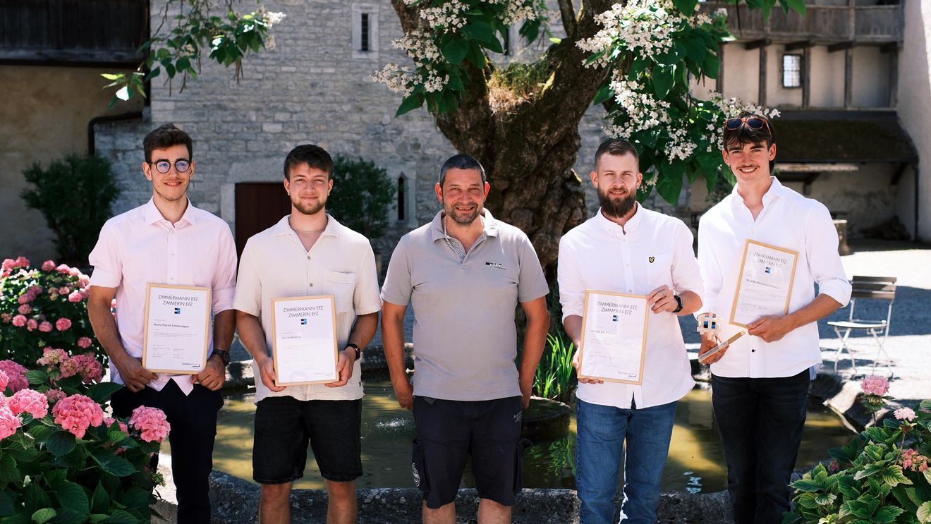 Rémy Emmenegger, Kevin Reichow, Keiren Trachsel und Riccardo Mattmann durften Ende Juni alle offiziell ihr Diplom als Zimmermann EFZ entgegennehmen. An der QV Feier auf Schloss Lenzburg wurden die Lernenden in einem gebührenden Rahmen gefeiert.