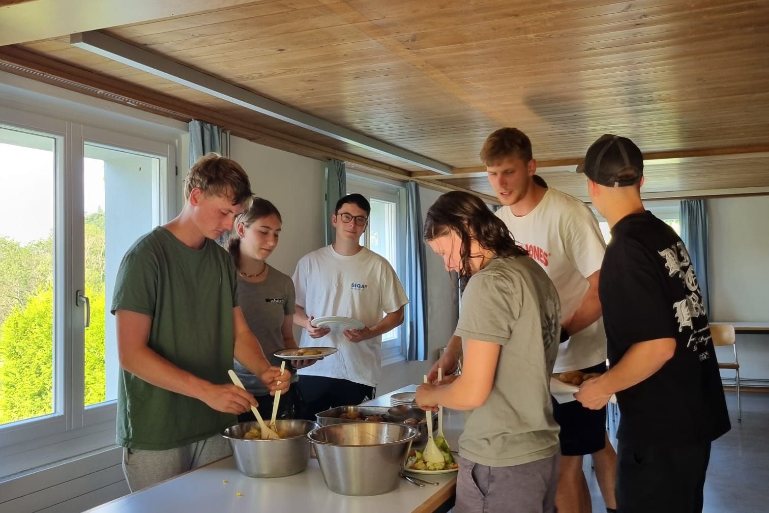Neben dem strengen Programm auf der Baustelle kam aber - wie immer im Lehrlingslager - der Spass auch nicht zu kurz. Leckeres Essen (herzlichen Dank nochmals an Sämi, Bea und Urs), Fussballspiele und gemeinsame Abende gehörten dazu und stärkten das grossartige Team der Lernenden noch mehr.