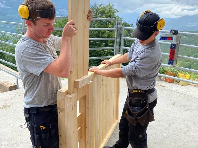Auf unseren drei Baustellen im Hasliberg konnten unsere Lernenden zudem auch Arbeiten erledigen, die sie im üblichen Arbeitsalltag nicht mehr machen, u.a. das Erstellen eines Tores.