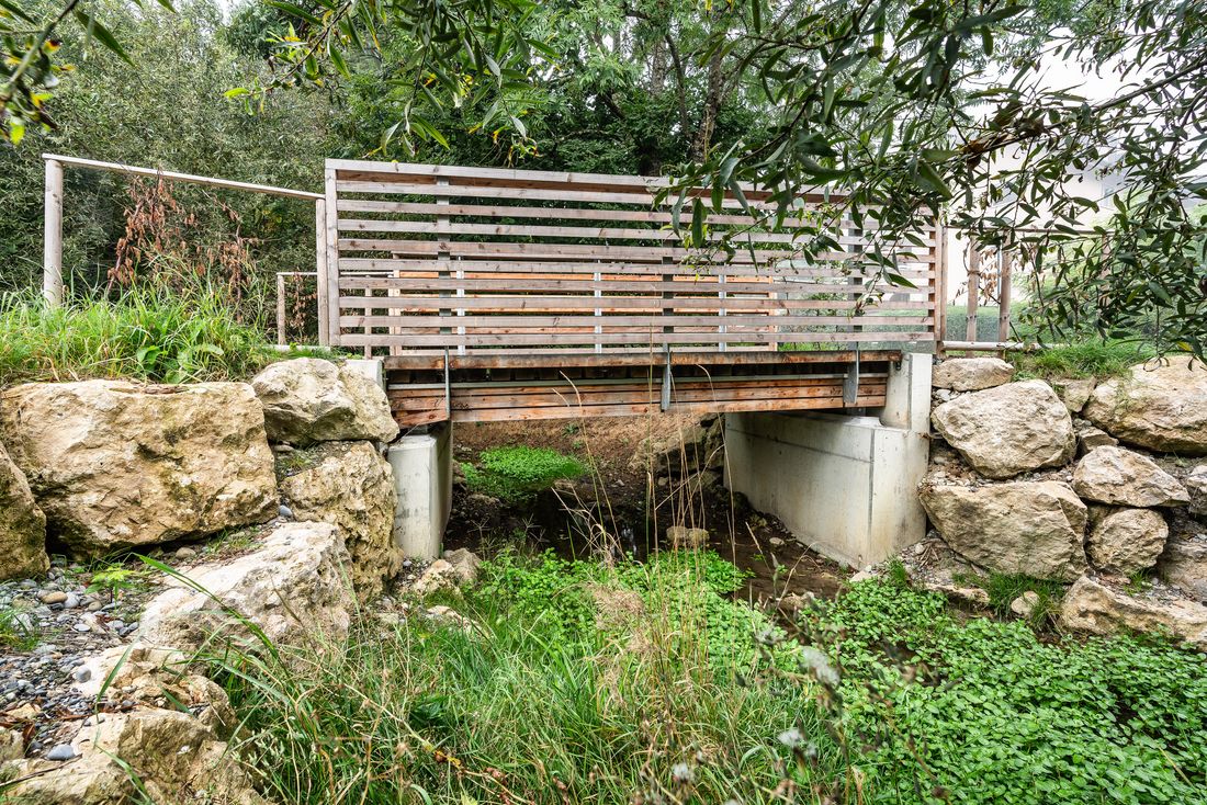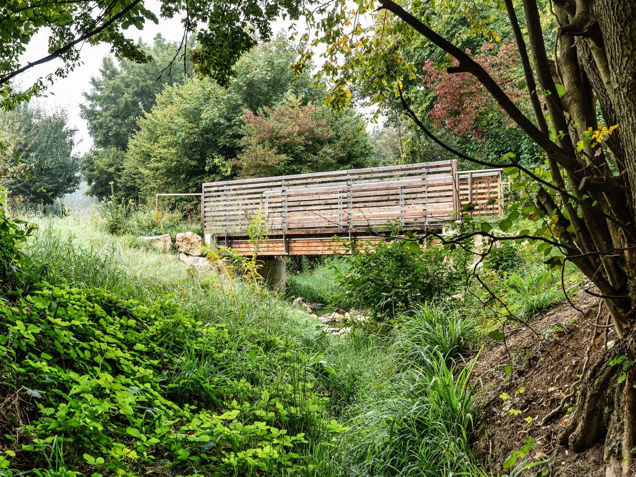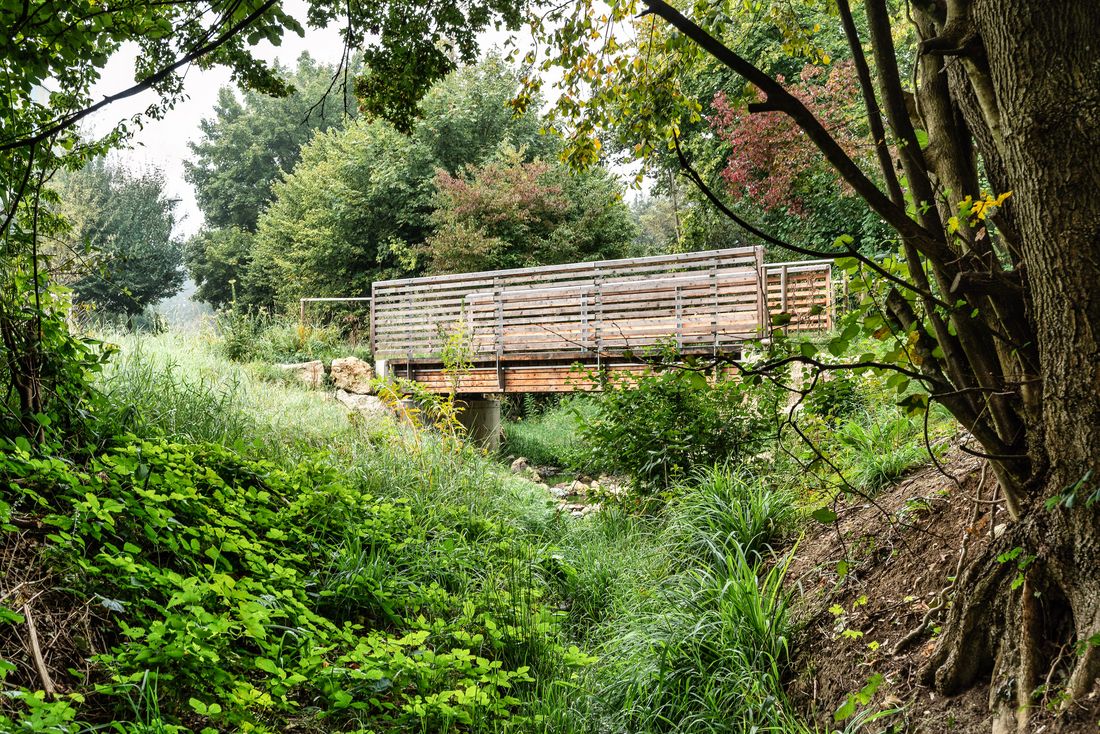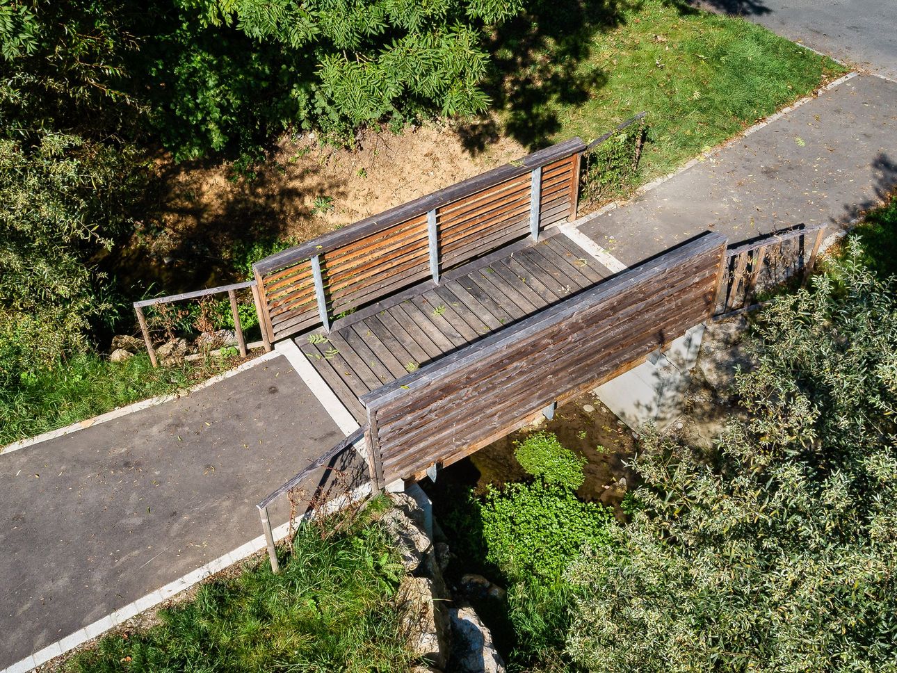 Gleich zwei Fussgängerbrücken aus Schweizer Holz durften wir 2024 über das Rombachbächli bauen. Ein Bericht zum Hochwasserschutz des Baches hatte ergeben, dass die bestehenden Brücken eine zu geringe Durchflusskapazität aufwiesen und deshalb ersetzt werden mussten. Jetzt kann das Rombachbächli an zwei Stellen wieder sicher und bequem überquert werden.