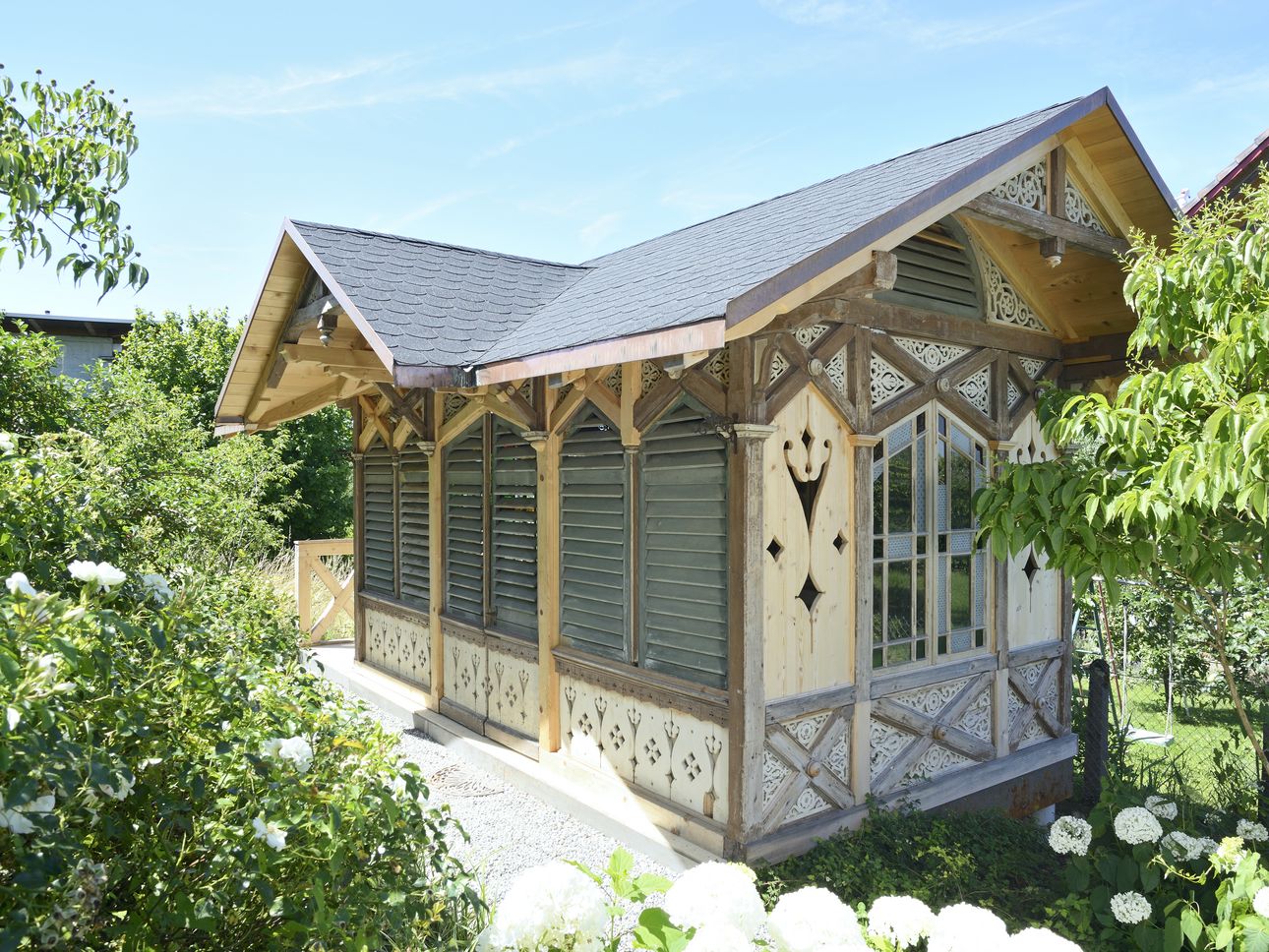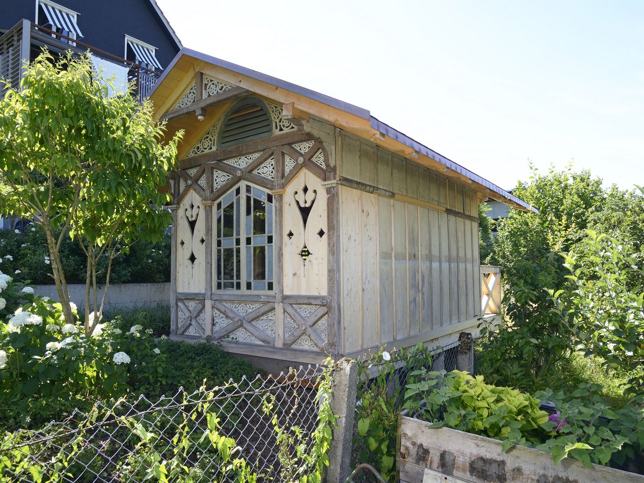 Der Wiederaufbau des Pavillons erfolgte direkt im Garten der Bauherrin im Fahrwangen.
