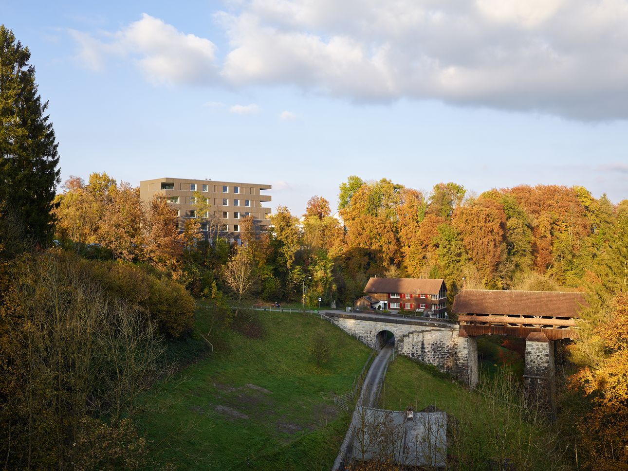 Ein neues Mehrfamilienhaus auf dem Felssporn in Rothenburg.