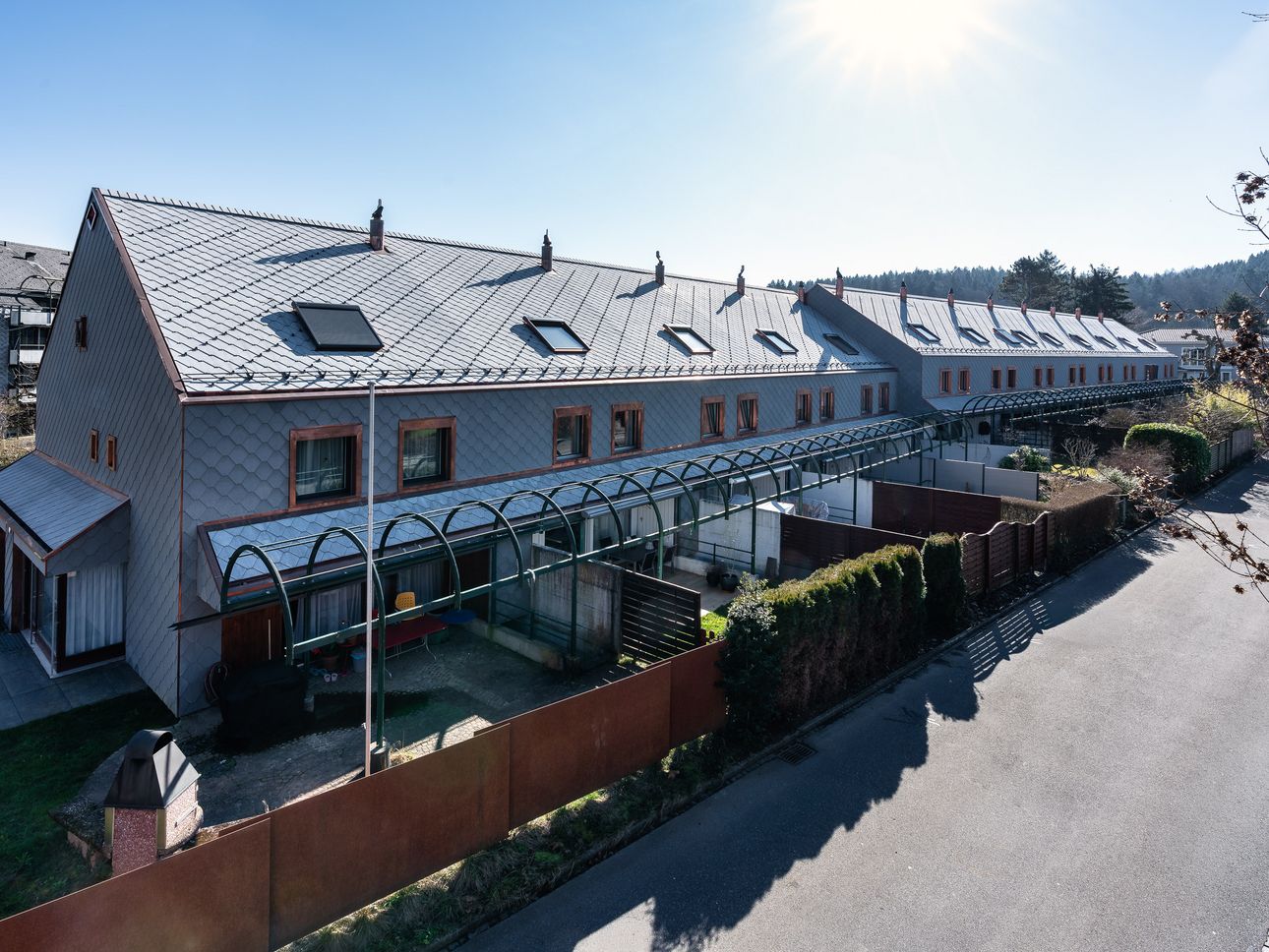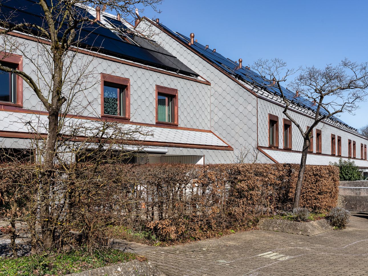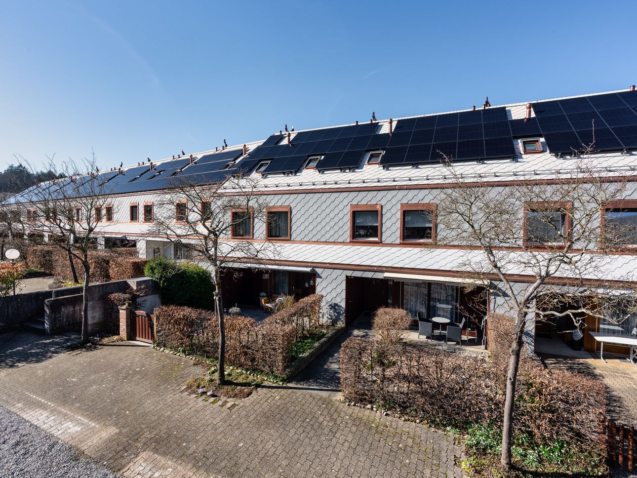 Gebaut wurden die Häuser anfangs der 80er Jahre, 2025 wurden sie durch uns energetisch saniert – für ein nachhaltigeres Wohnen dank besserer Dämmung, einer neuen Fassade und einem neuen Dach, einer PV-Anlage sowie neuen Dachfenstern.