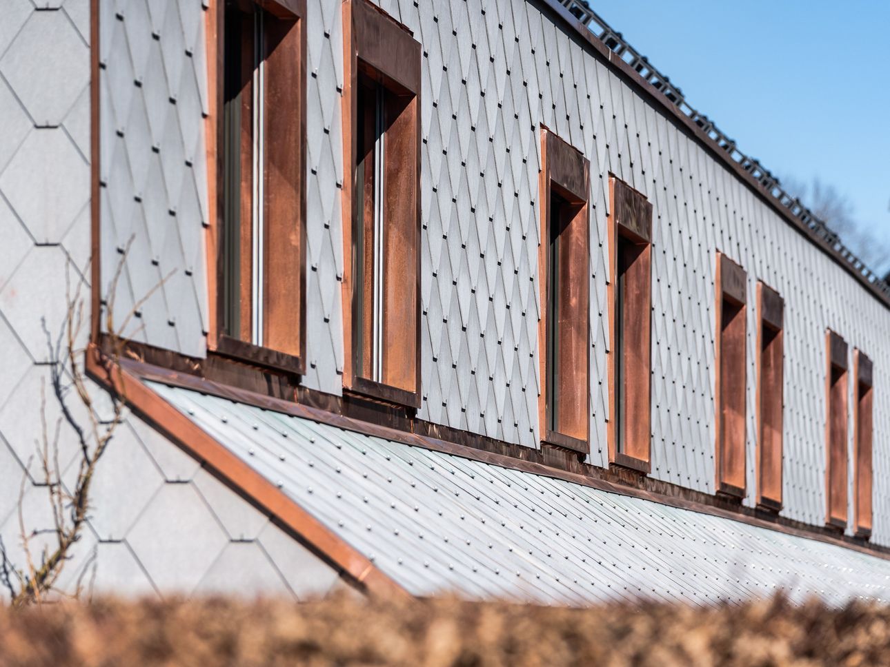 Da die Gebäude denkmalgeschützt sind (zur Erhaltung der Einheitlichkeit der Siedlung), aber Asbestbestandteile hatten, waren unsere Mitarbeitenden vor Ort sehr gefordert. Der alte Wabenschiefer wurde fachgerecht demontiert und entsorgt. Im Schutzanzug mit Maske waren unsere Fachleute stundenweise im Einsatz für diese schweisstreibende Arbeit, damit alle Altlasten an der Fassade und dem Dach behoben werden können. Gleichzeitig wurden auch die Dachstühle energetisch saniert.