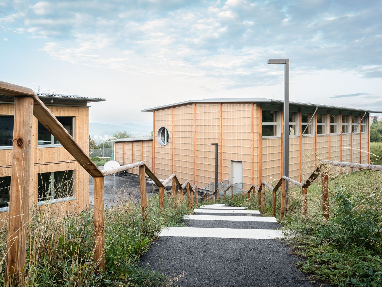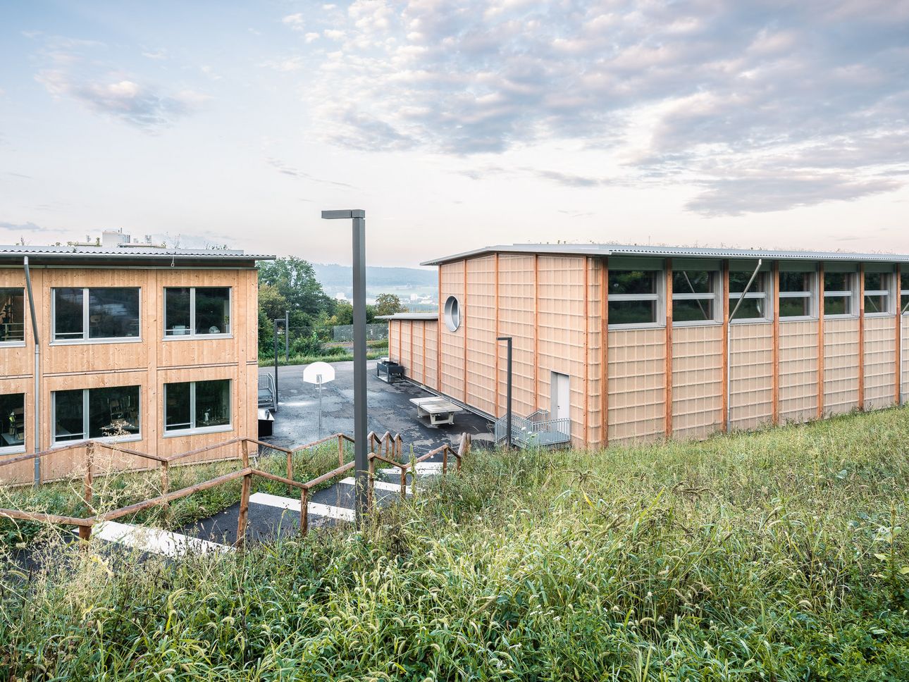 Architekt illiz architektur GmbH, Zürich (Schulhaus), pool Architekten, Zürich (Sporthalle)